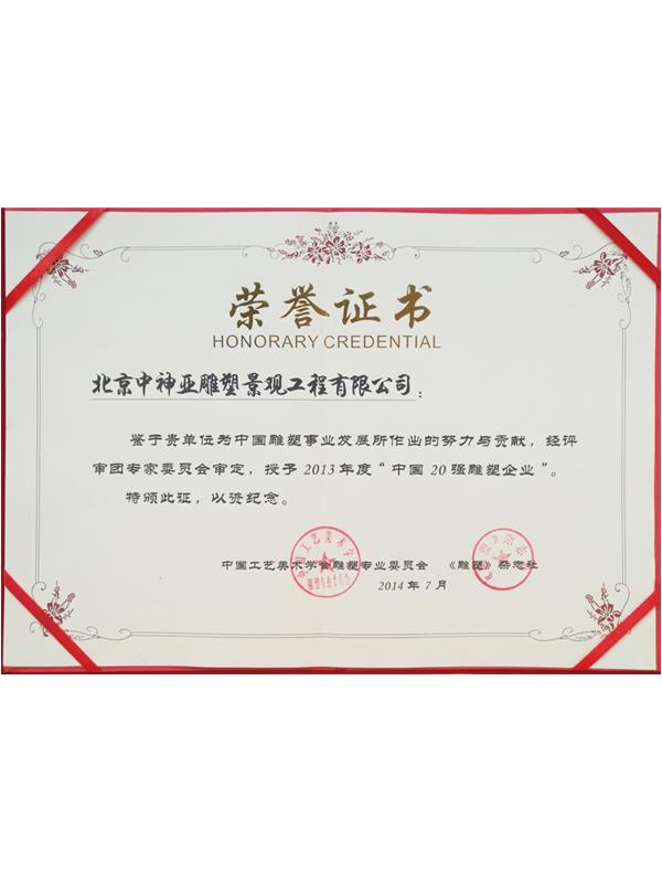 • 2013年度中國20強雕塑企業榮譽證書