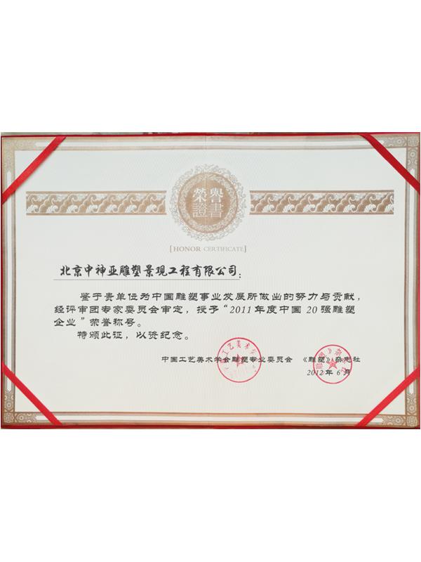 • 2011年度中國20強雕塑企業榮譽證書